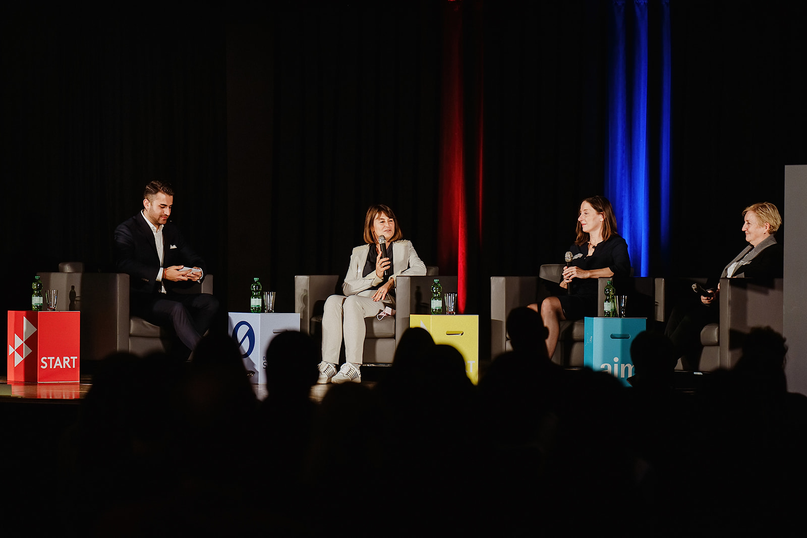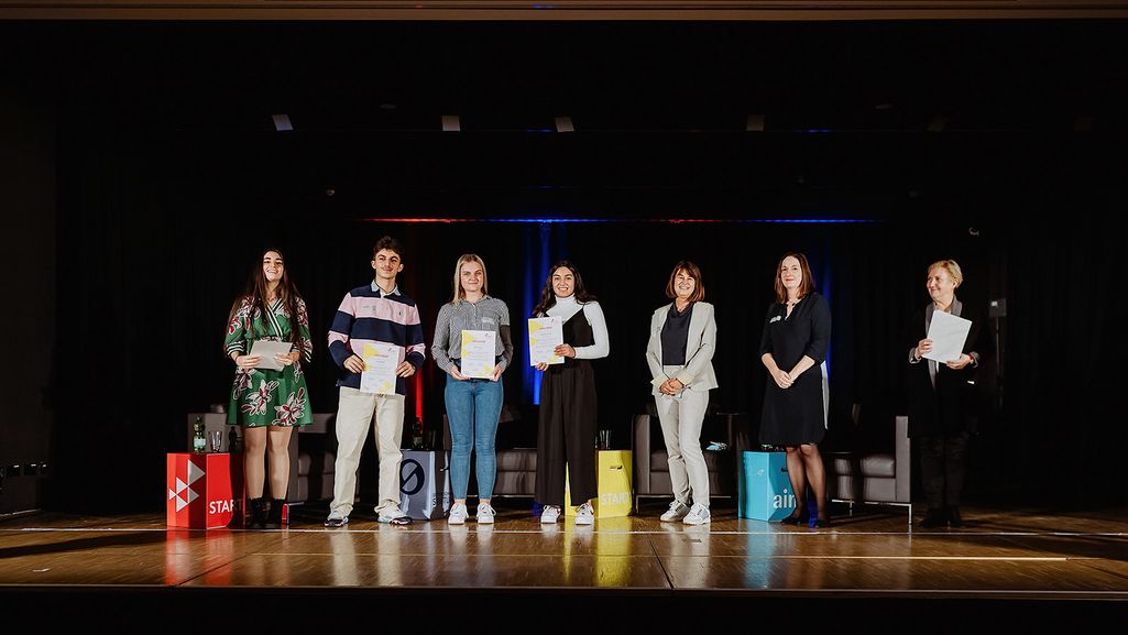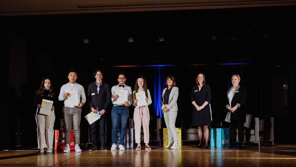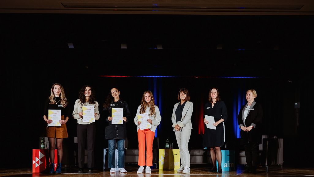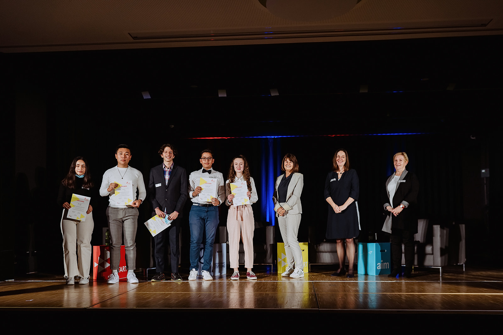- Silke Lohmiller, Geschäftsführerin der Dieter Schwarz Stiftung, Tatjana Linke, Geschäftsführerin der Akademie für Innovative Bildung und Management (aim), sowie Stefanie Kreyenhop, Geschäftsführerin der START-Stiftung, überreichen die Stipendienurkunden.