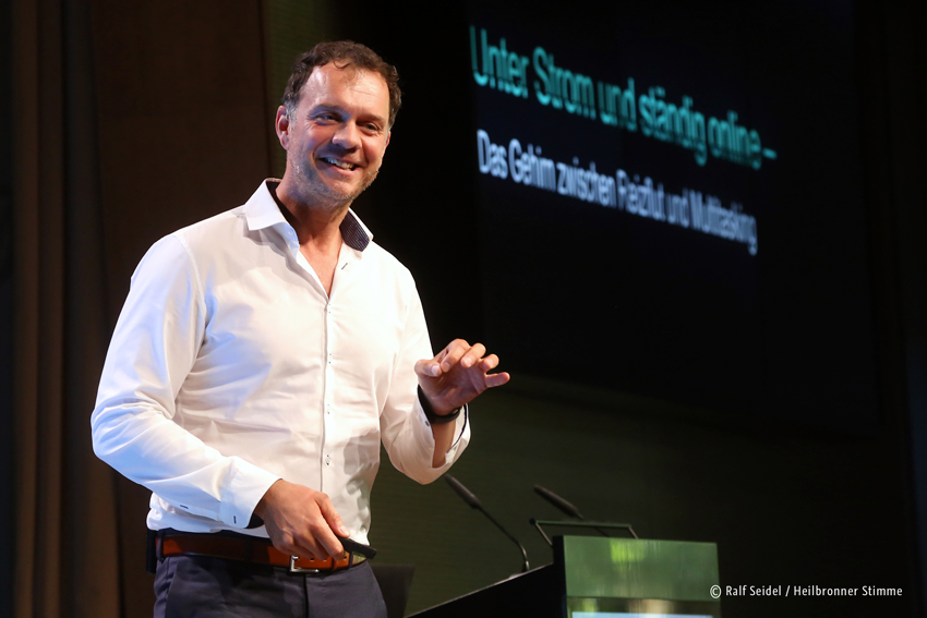 So schön war die Bürger-Uni am 28. Juni 2017 mit Priv.-Doz. Dr. med. habil. Volker Busch! Der Facharzt für Neurologie sowie Facharzt für Psychiatrie und Psychotherapie am Lehrstuhl der Uni in Regensburg erläuterte den Zuschauern anschaulich und mit viel Humor die Tücken und Fallen der medialen Reizüberflutung in unserer heutigen Gesellschaft. Auch führte er das Publikum in die Geheimnisse des Multitaskings ein und widerlegte den Trugschluss, dass Frauen Multitasking besser beherrschen als Männer. Mit kleinen praktischen Tipps, wie sich das menschliche Gehirn in unserer digitalisierten Welt etwas erholen kann und mit vielen neuen Impulsen, entließ Dr. Volker Busch die Besucher in den Alltag, um ihre gewonnenen Erkenntnisse auszutesten.