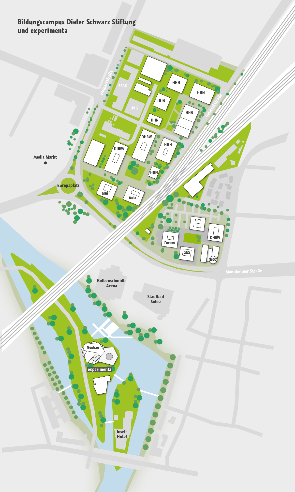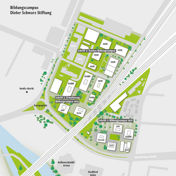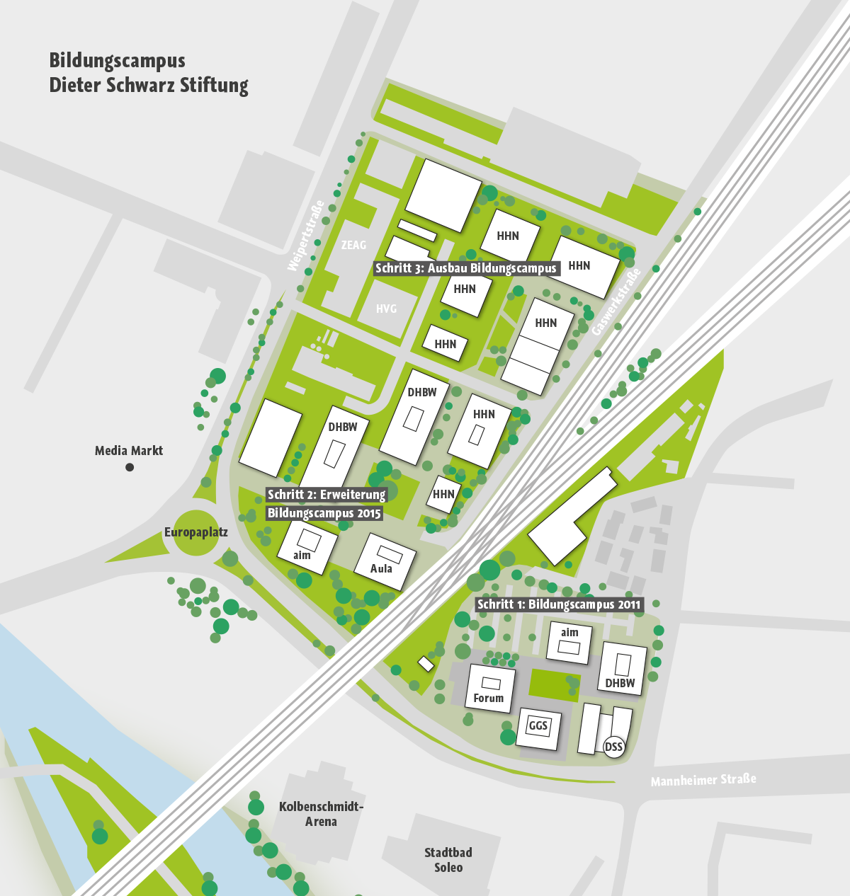 Seit Oktober 2011 ist der Bildungscampus der Dieter Schwarz Stiftung an der Mannheimer Straße in Betrieb. Auf rund 12.000 qm Nutzfläche sind die Akademie für Innovative Bildung und Management (aim), die private Hochschule für Unternehmensführung German Graduate School of Management and Law (GGS) und die Duale Hochschule Baden-Württemberg (DHBW) Heilbronn untergebracht. Allen drei Bildungseinrichtungen stellt die Dieter Schwarz Stiftung jeweils ein eigenes Gebäude zur Verfügung, das speziell für die Bedürfnisse der jeweiligen Einrichtung ausgestattet wurde. Zusätzlich befindet sich im so genannten Forum des Bildungscampus eine Aula mit maximal 400 Plätzen, sowie eine Mensa des Studentenwerks Heidelberg mit 138 Plätzen und eine moderne Bibliothek.