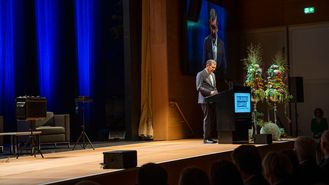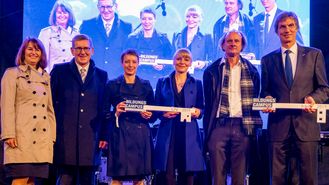 Bildungscampus-Architekt Achim Söding von Auer Weber aus Stuttgart betonte in seiner Ansprache, dass die Architektur des Bildungscampus einen Beitrag leiste, um im Sinne der Dieter Schwarz Stiftung „Zukunft zu wagen“. Das Gebaute erlangt seine wahre Bedeutung dann, wenn die entstandenen Räume durch Studierende sowie Dozentinnen und Dozenten lebendig werden. Er überreichte anschließend zwei symbolische Schlüssel an den Rektor der Hochschule Heilbronn, Prof. Oliver Lenzen sowie an die beiden Leiterinnen der neuen Bibliothek-LIV, Kathrin Flohr und Rahel Zoller.