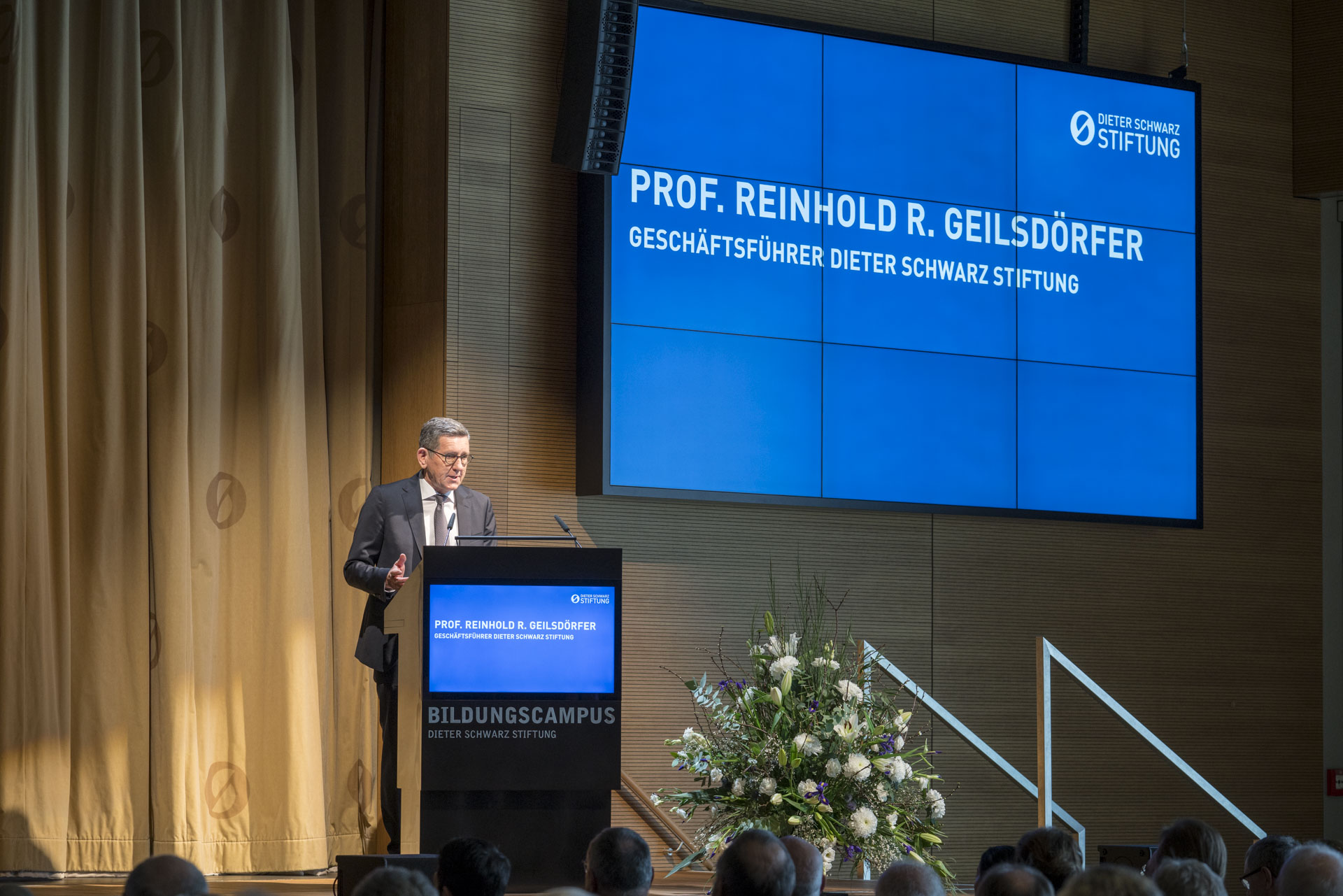 Bei seiner Begrüßung betonte Prof. Reinhold R. Geilsdörfer, Geschäftsführer der Dieter Schwarz Stiftung, die Bedeutsamkeit der Ansiedlung der TUM in Heilbronn: "Der neue Standort der TU München soll dazu beitragen, die Forschung in Heilbronn zu stärken und weiter auszubauen sowie die internationale Sichtbarkeit des Bildungscampus zu erhöhen. Das Ziel, die Bildungspyramide im Bereich der Hochschulen vollständig zu schließen, ist mit der Eröffnung des TUM Campus Heilbronn als universitäre Einrichtung gelungen und wird dem Bildungscampus weitere Strahlkraft verleihen."