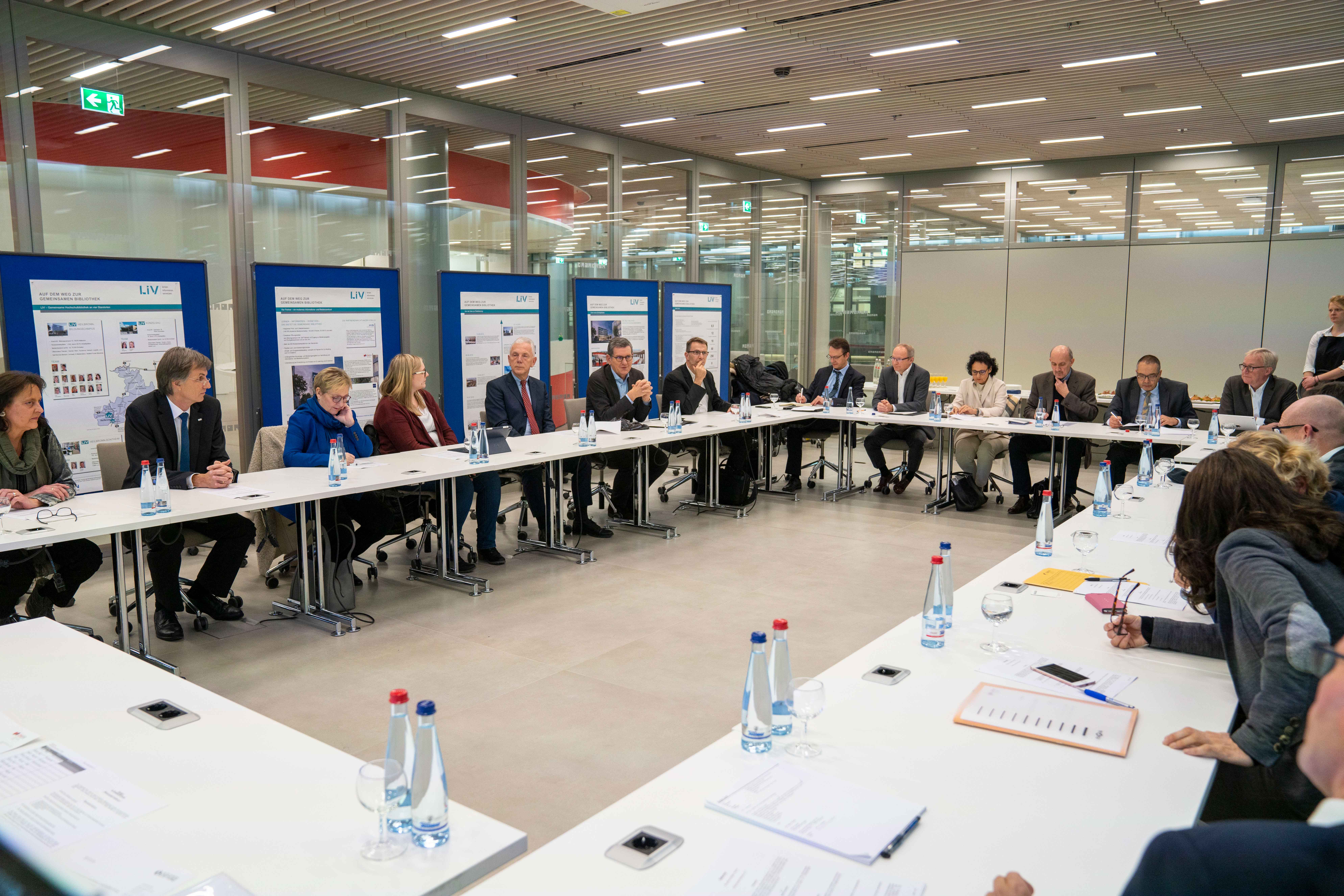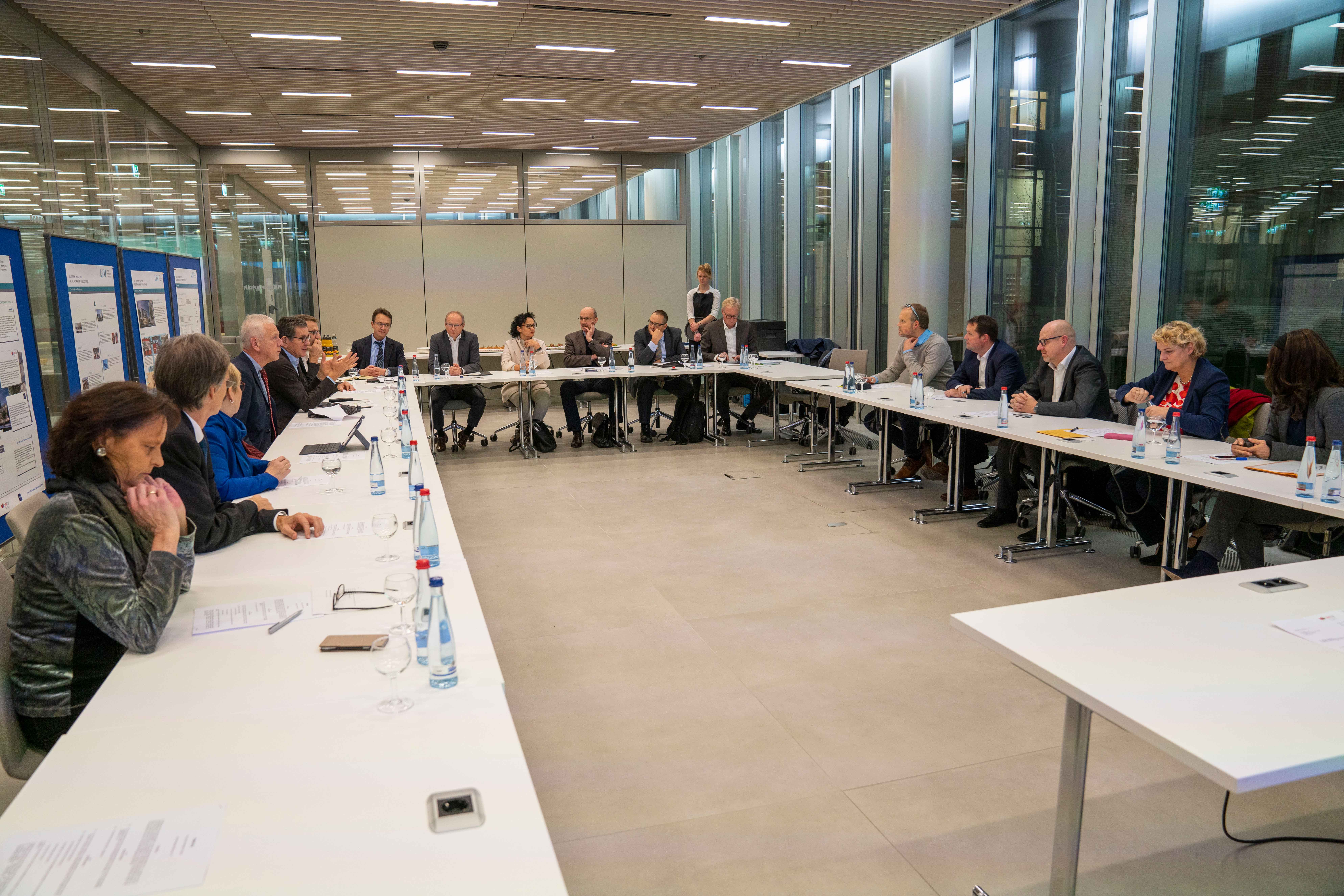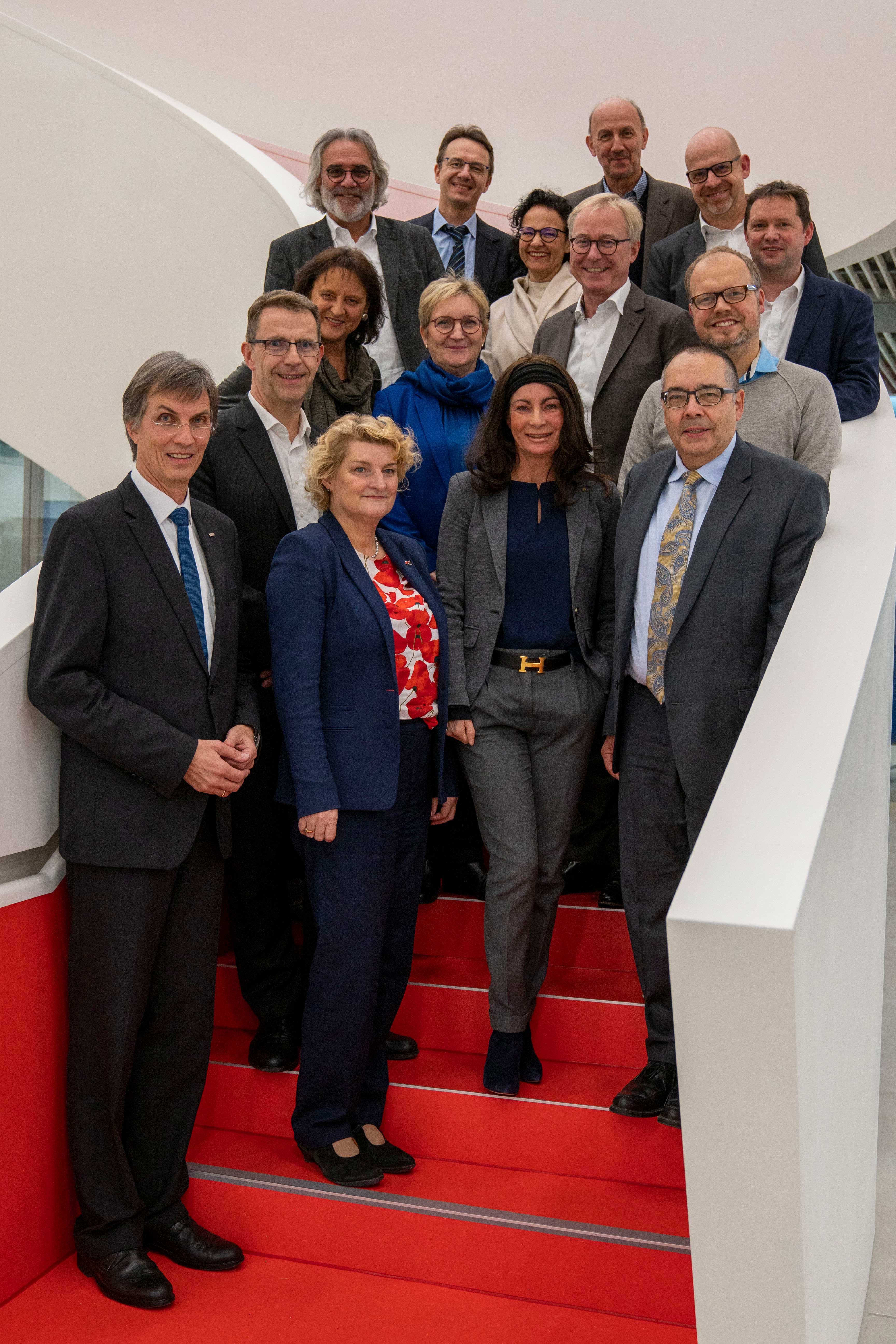 Bildunterschrift (v. l.): Prof. Dr. Oliver Lenzen (Rektor Hochschule Heilbronn), Prof. Dr. Doris Nitsche-Ruhland (nebenamtliches Mitglied des Präsidiums der DHBW), Prof. Dr. Nicole Graf (Rektorin DHBW Heilbronn) (2. Vorsitzende), Prof. Dr. Helmut Krcmar (Vice Dean TUM Campus Heilbronn), Prof. Dr. Joachim Frech (Rektor Center for Advanced Studies der DHBW), Tatjana Linke (Geschäftsführerin aim), Oliver Hanisch (Geschäftsführer Campus Founders), Prof. Dr. Ruth Fleuchaus (Prorektorin Hochschule Heilbronn) (1. Vorsitzende), Tilmann Distelbarth (Geschäftsführer/Verleger Heilbronner Stimme), Michael Andree (Geschäftsführer andree. kommunikation) (Gründungsbeauftragter), Prof. Dr. Bärbel Renner (Bereichsleitung Kommunikation/Verwaltung experimenta), Prof. Dr. Heiner Lasi (Leiter Ferdinand-Steinbeis-Institut), Dr. Bernd Bienzeisler (Leiter Forschungs- und Innovationszentrum KODIS des Fraunhofer-Instituts IAO) (Schatzmeister), Dr. Wolfgang Hansch (Geschäftsführer experimenta), Michael Köhnlein (Managing Partner des Steinbeis Digital Business Consortiums)