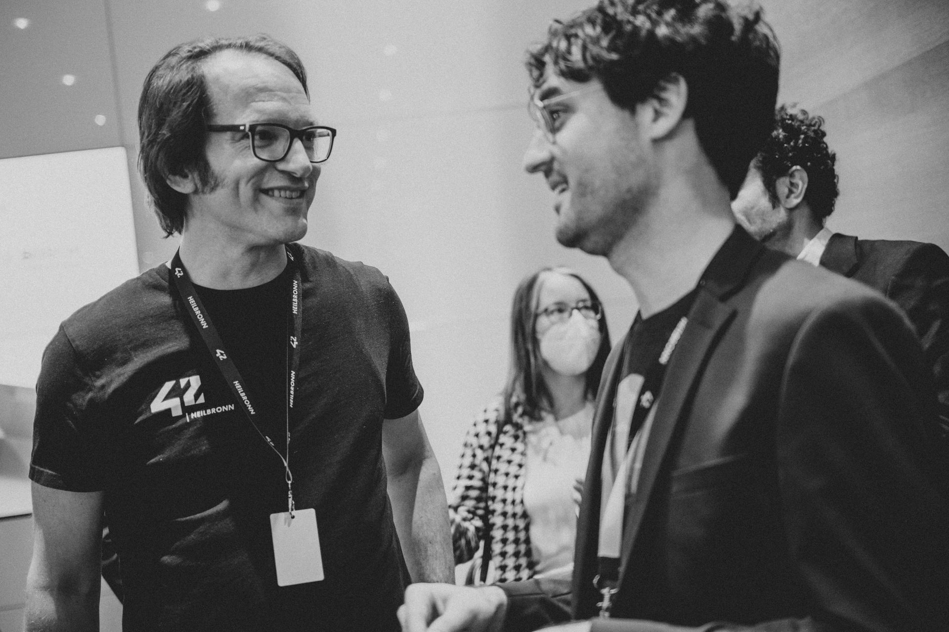 Zum Abschluss der Veranstaltung hatten die Gäste die Gelegenheit, die 42 Heilbronn zu besichtigen. Dort hatten sie Gelegenheit, die futuristisch gestalteten Arbeits- und Aufenthaltsräume der Studierenden zu besichtigen. Die KI-Künstlergruppe Lunar Ring präsentierte dort ihre Installation "Deep See". Hier kamen die Besucher direkt mit den neuesten Paradigmen der Künstlichen Intelligenz in Berührung.