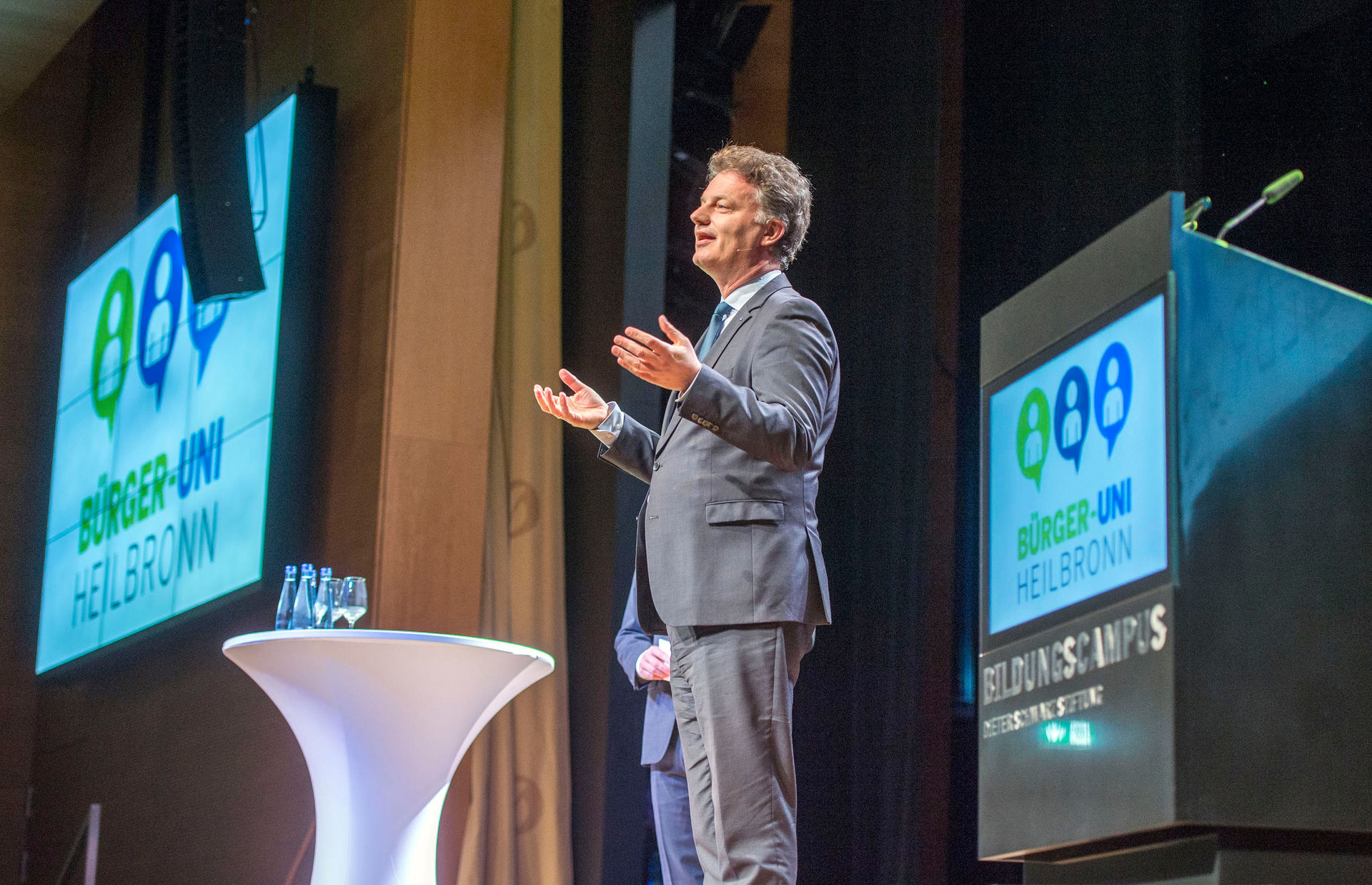 Unter dem Slogan NEUGIER. WISSEN. ZUKUNFT. haben die Kooperationspartner German Graduate School of Management and Law (GGS), Heilbronner Stimme und die Dieter Schwarz Stiftung am Standort Heilbronn die Vortragsreihe „Bürger-Uni“ ins Leben gerufen, um interessierten Bürgerinnen und Bürgern freien Zugang zu wissenschaftlichen Themen zu ermöglichen. Seit 2019 ist auch die Technische Universität München als weiterer Partner an Bord.